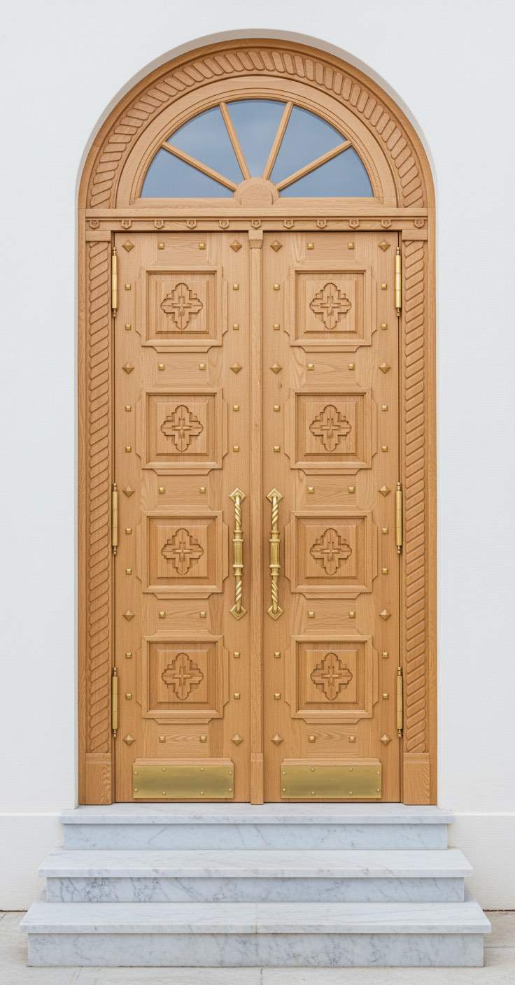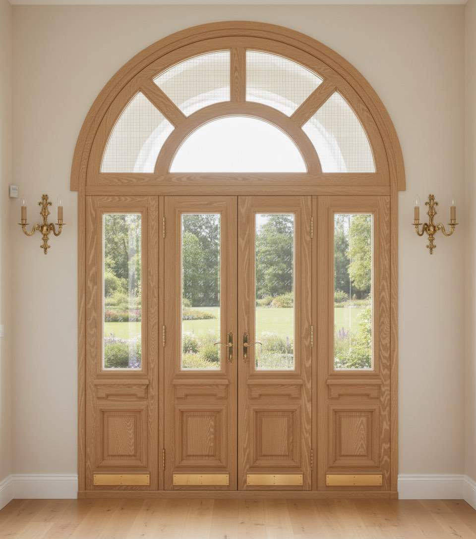 Арочная входная дверь из массива дуба. Филармония.