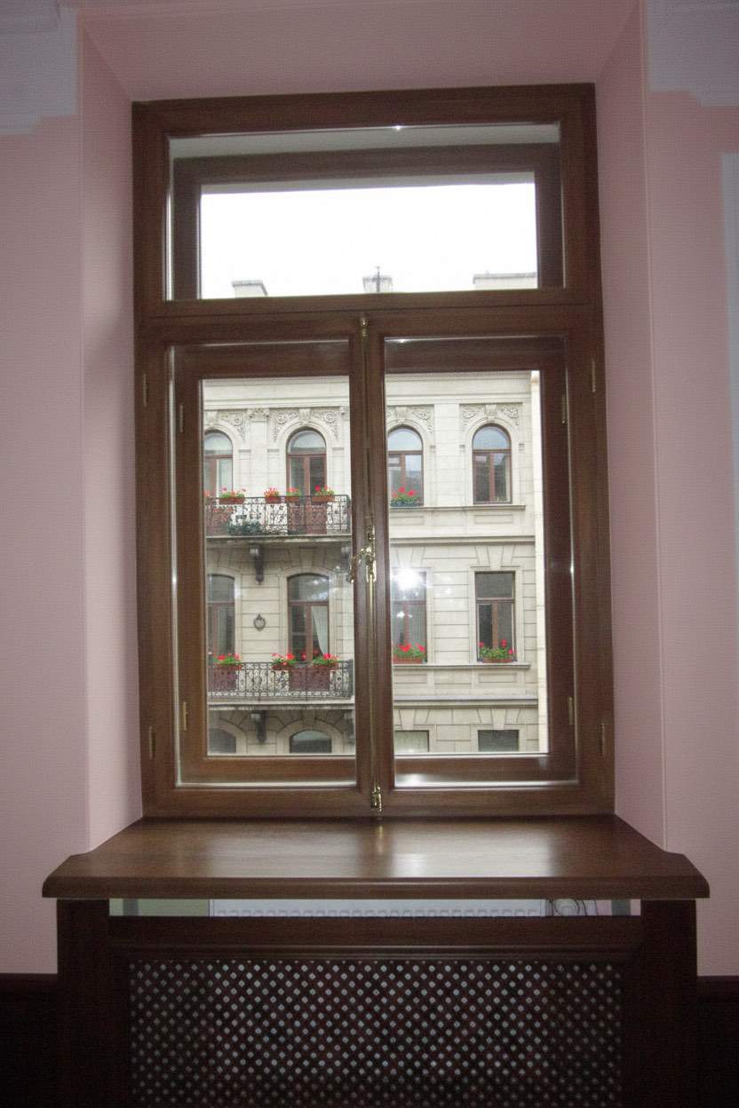 Деревянные окна со стеклопакетом из дуба.
